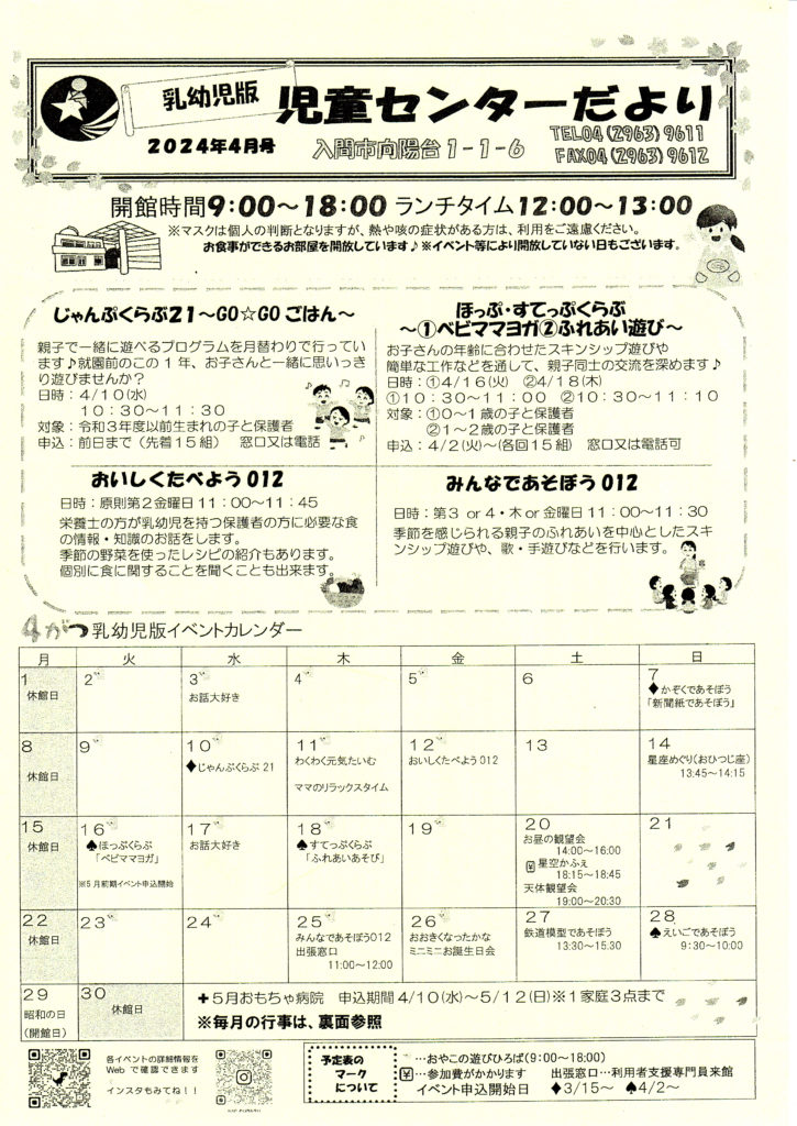 ー乳幼児版ー 児童センターだより 2024年4月号