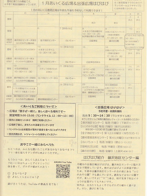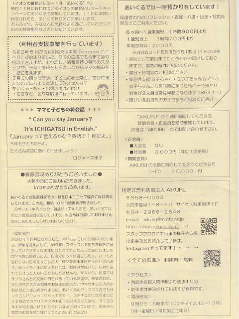 ワイワイなかま ー活動日程表ー 令和8年1月~3月