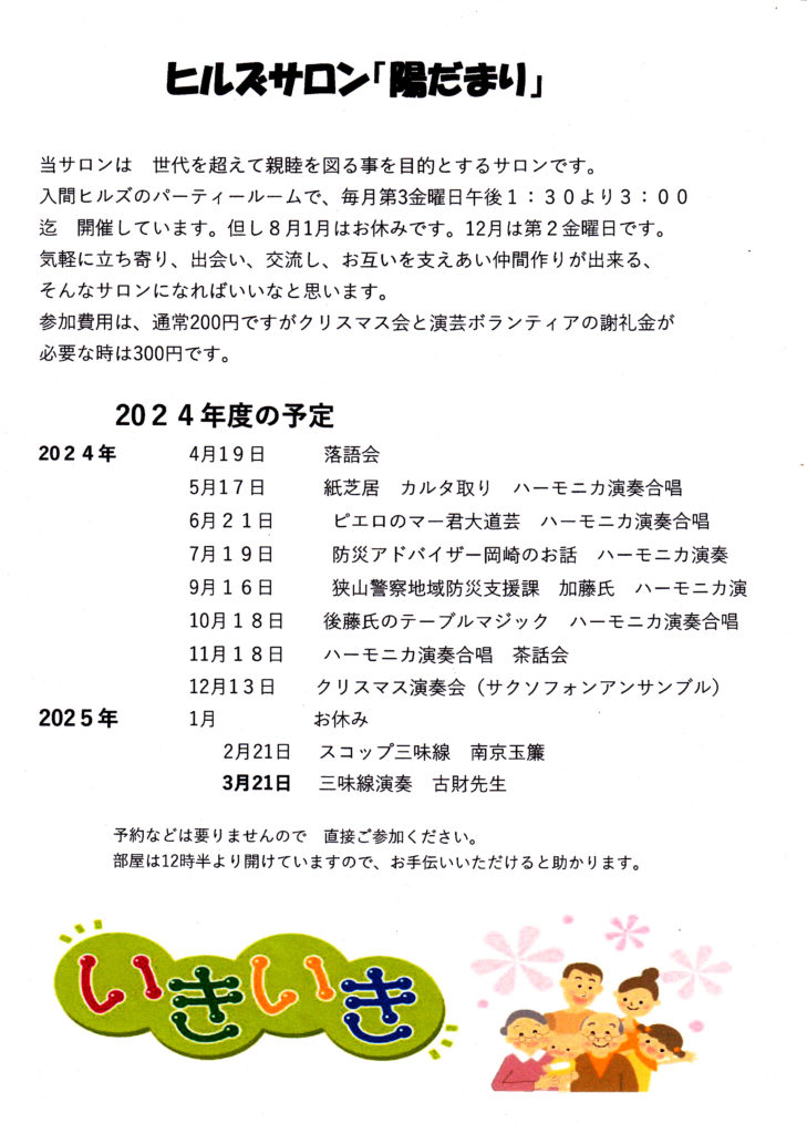 ヒルズサロン「陽だまり」 2024年度の予定