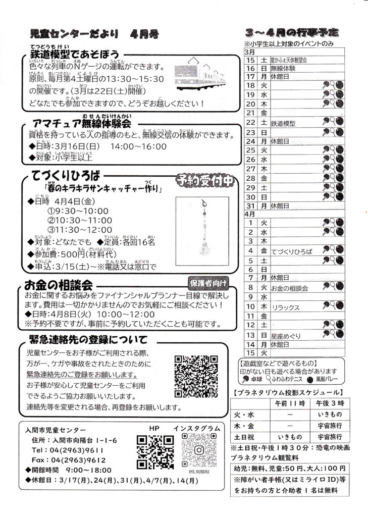 ワイワイなかま ー活動日程表ー (4月~6月)