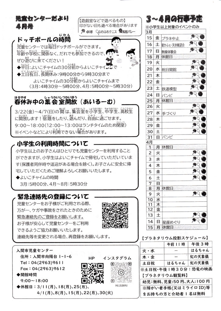 ー乳幼児版ー 児童センターだより 2024年4月号