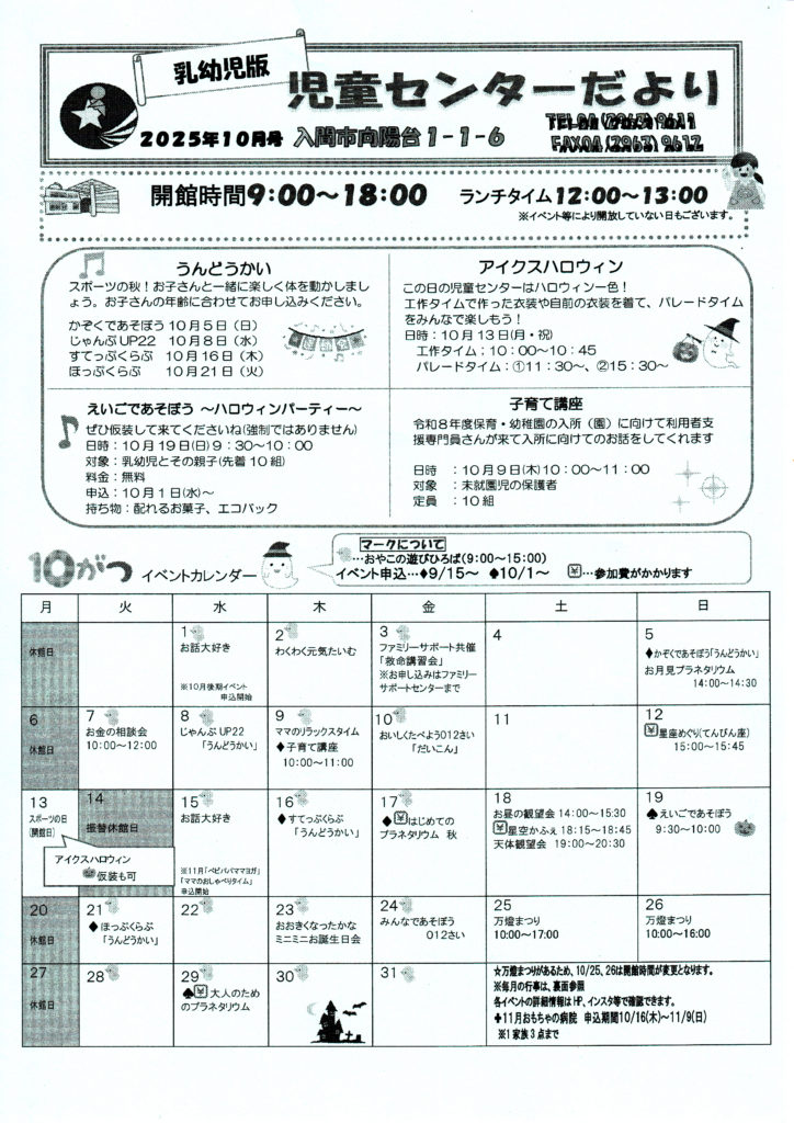 • -乳幼児版- 児童センターだより 2025年10月号