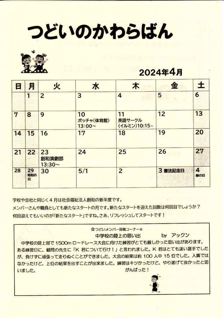 つどいのかわらばん 2024年4月